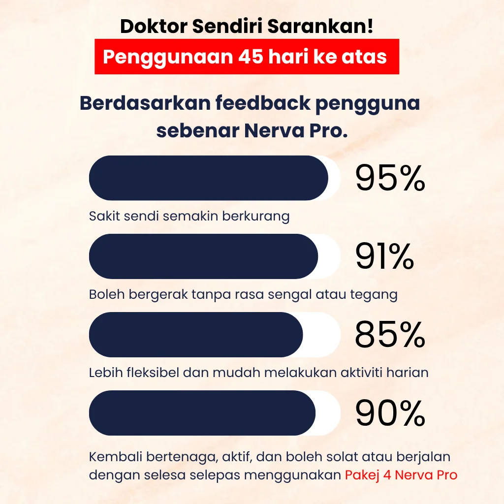 Gunakan Nerva Pro secara konsisten selama 3 bulan, dan jika rasa tak puas hati dengan hasilnya, pulangkan semula produk.